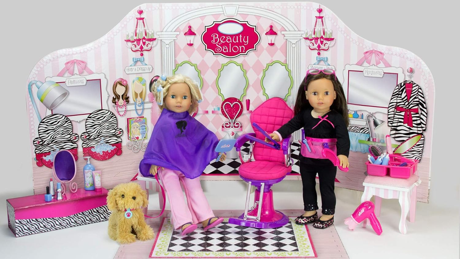 Make a doll salon chair. They have only played with the chairs like twice where the doll is surpose to. Visit my salon doll to find cute clothes and accessories today! A realistic salon chair that swivels and can be raised up and down with a working foot lever and features a metal base with a suction cup for stability.